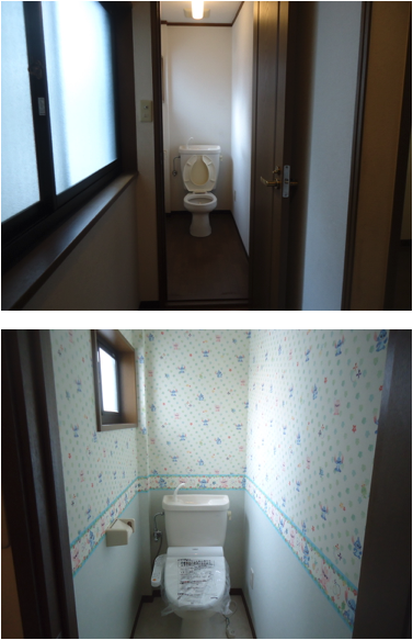 堺市堺区のトイレリフォーム工事例です。壁紙と床材の内装工事も同時工事も行います。トイレリフォームや水まわり、その他何でもお見積無料でご訪問します。